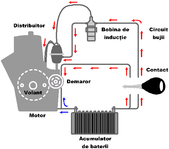 - circuit de înalta tensiune - este alcatuit din înfasurarea secundara a bobinei de inductie, distribuitorul, bujiile, conductorii de înalta tensiune.