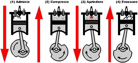 Ciclul motor cu aprindere prin scânteie în patru timpi este: admisia, compresia, aprinderea si evacuarea.
