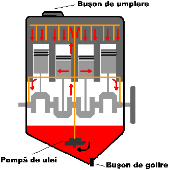 Pompa de ulei este antrenata de arborele cu came, prin intermediul pinionului de pe arborele ruptorului distribuitor.Filtrarea uleiului de la motor se realizeaza printr-un filtru de hârtie legat în serie la circuitul de ungere. Pentru instalatia de ungere a motoarele automobilelor se folosesc uleiuri minerale sau sintetice.