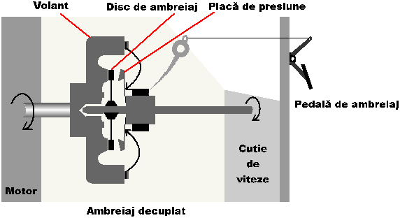 Decuplarea si cuplarea motorului de transmisie sunt necesare la pornirea de pe loc a automobilului si în timpul mersului pentru schimbarea treptelor cutiei de viteze.