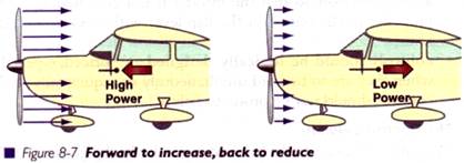 Aeronavele cu motoarele clasice si elice fara pas variabil au cateva comenzi de control: maneta de gaze pentru motor, maneta de turatie a elicei, controlul amestecului carburant, incalzirea aerului la intrare in carburator (sau incalzirea aerului daca motorul este pe injectie), maneta sau butonul de comanda flapsurilor.