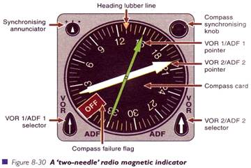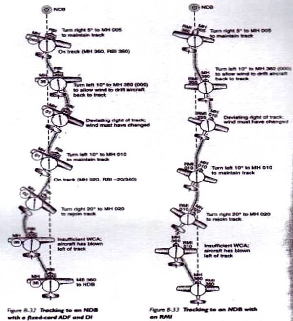 Ilustratiile din fig 8 - 32 arata apropierea de un NDB cu vechiul ADF si cu un aparat modern RMI in fig. 8 - 33.