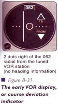 Ecranul initial de la VOR, utilizat de majoritatea pilotilor, arata deviatia unghiulara fata de un radial VOR selectat, dar nu indica si capul. De asemenea, daca zburati dinspre radiofar, si sunteti setat pe OBS (Omni Bearing Selector), pe un cap apropiat, informatia este intuitiva.