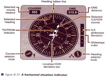 Un pas inainte a fost facut atunci cand ecranul VOR-ului a fost suprapus peste indicatorul de directie, rezultand HSI (ISO). Aceasta inseamna ca ecranul VOR este un instrument de comanda, tot timpul, iar grafica designului HSI il face un aparat bun. La fel ca la VOR, puteti selecta ILS pe HSI, iar acul care indica directia pantei apare la fel ca cea care indica cursul. Cand utilizati ILS va folositi si de marcajele si sunetele care indica o anumita inaltime pe panta, la anumite puncte de pe aceasta.