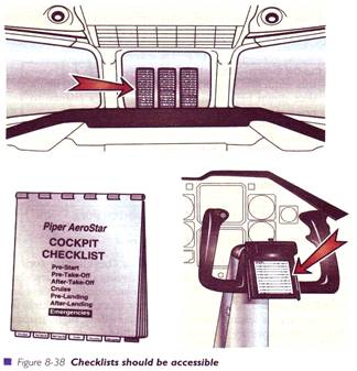Toate listele trebuie sa fie la indemana. Foarte multe din acestea se prezinta sub forma unor brosuri sau mici memoratoare, localizate convenabil in cabina. Deseori acestea sunt plasate pe o placuta atasata mansei, pentru a fi utilizate rapid, fara a se distrage atentia pilotului de la aparatele de bord si de la mediul extern. Altele sunt plasate una sub cealalta, astfel incat cele citite sa fie indepartate si prinse de rama panoului de bord.