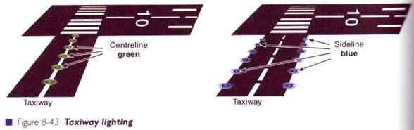 Luminile cailor de rulare constau in lumini laterale albastre, cele din centru fiind verzi sau o mixtura a ambelor. La un aerport cu o retea complexa de cai de rulare - de ex. la un aeroport mare international - luminile albastre vazute sub un anumit unghi pot sa para neclare, sa induca confuzie, de aceea trebuie sa rulati usor si sa verificati daca sunteti intr-adevar pe pista de rulare dorita, intre cele doua linii albastre. Liniile verzi din centru sunt mai usor de urmat - trebuie doar sa o priviti si rotile vor urma o cale sigura. Limitele sau limitarile vor fi marcate cu lumini de culoare rosie sau galbuie sau cu semne bine iluminate.