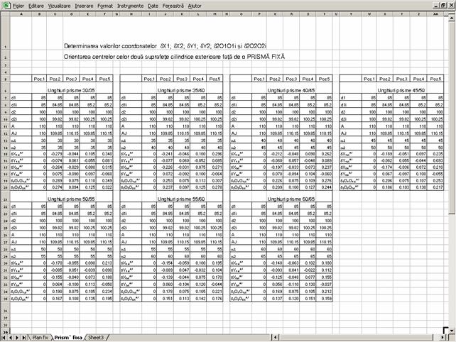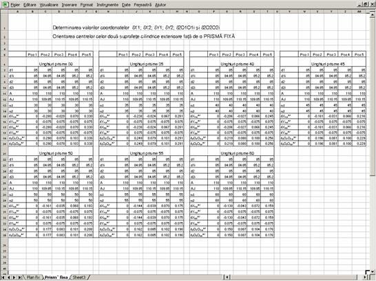 In tabelele 3.9; 3.10 si 3.11 s-au trecut valorile (utilizand mai multe zecimale) principalilor parametrii legati de orientarea unei piese dupa suprafetele cilindrice exterioare; aceasta pentru a putea pune in evidenta diferentele intre acestia pe anumite domenii de variatie ale diametrelor sau unghiurilor prismelor dupa cun urmeaza: