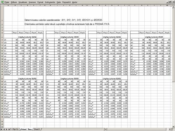 In tabelul 3.12 s-au trecut valorile (cu multe zecimale) principalilor parametrii legati de orientarea unei piese dupa suprafetele cilindrice exterioare; aceasta pentru a putea pune in evidenta diferentele intre acestia pe anumite domenii de variatie ale diametrelor sau unghiurilor prismelor dupa cun urmeaza: