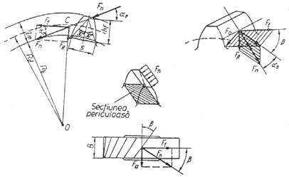 Fig. 6.1.2. Definirea fortelor din rotile dintate cilindrice cu dantura înclinata