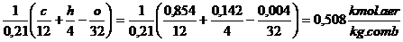 Aerul minim necesar arderii a 1kg de combustibil se calculeaza cu relatia:
