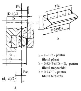 sarcina axiala exterioara F se repartizeaza uniform pe spirele in contact dintre surub si piulita;