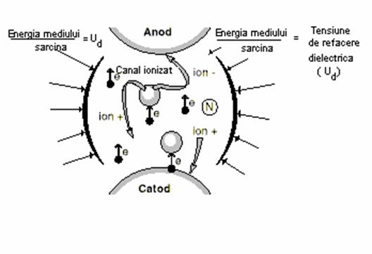 Energia necesara strangularii canalului ionizat raportata la purtatorii de sarcina din acest canal poarta denumirea de tensiune de refacere dielectrica sau tensiune de tinere