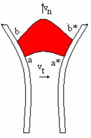 Deplasarea coloane de arc este caracterizata printr-o viteza normala pe coloana de arc vn si o viteza de alungire vt .