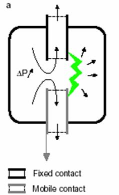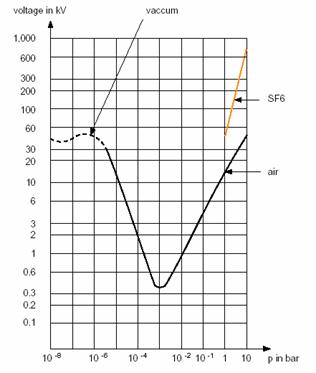 Calitatea de material izolant a unui mediu este masurata prin tensiunea de strapungere dielectrica dintre contacte care depinde de presiunea si distanta dintre electrozi.