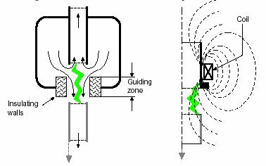 Doua metode de ghidare ale arcului au fost dezvoltate, ghidarea mecanica si ghidarea magnetica, care permite stabilizarea arcului īn zona pompei precum si eliminarea curentilor critici.