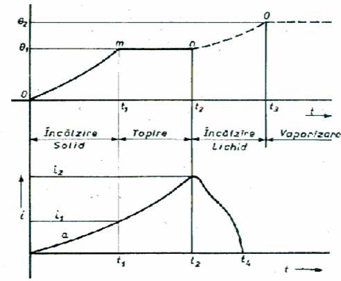 Evolutia īn intervalul t1-t2 este descrisa de transformarea fuzibilului īn metal lichid