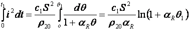 A - aria sectiunii transversale a elementului fuzibil īn sectiunea diminuata