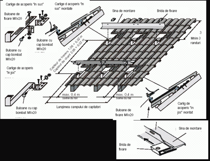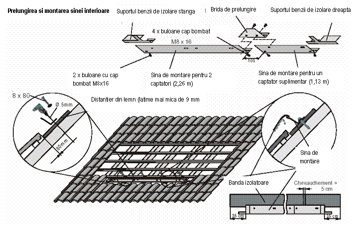 montarea in lung a captatorilor si 1,06 m pentru montarea transversala a acestora) si fixati cu ajutorul buloanelor si a piulitelor M8x20.