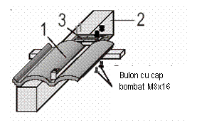 - Introduceti bulonul cu cap bombat M8x16 prin sina de egalizare de sus in jos.