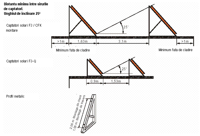 In plus campul de captatori trebuie montat pe acoperis. In aceste conditii, trebuie verificat in prealabil, capacitatea statica a suportilor de a rezista la incarcarea specifica a captatorilor precum si rezistenta acoperisului la sarcina. Pentru a determina exact rezistenta acestor componente, in cazul in care aveti intrebari, va puteti adresa unui specialist structurist.