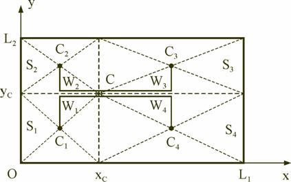 Fie planul unei sectii, de forma dreptunghiulara (L1 L2; L1³L2), raportata la planul xoy, ca in figura :