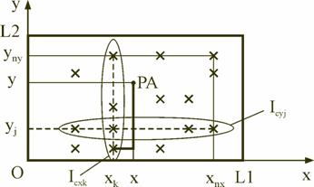 Icxk, Icyj - curentul cerut total al receptoarelor de la abscisa k, respectiv ordonata j;