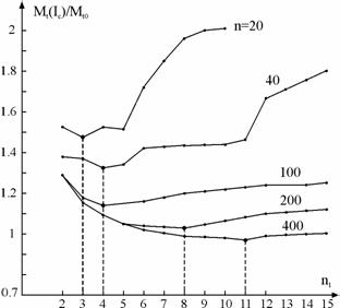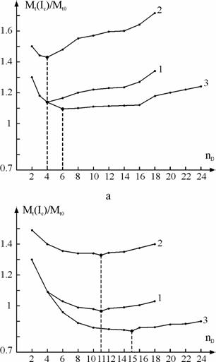 - in cazul divizarii atat pe lungime cat si pe latime, numarul optim de diviziuni este mai mare decat in cazul divizarii numai pe o latura a sectiei, dar momentul total al curentilor ceruti este mai mic (ex. nD= 6 pt. n=100, fig. 2,a);