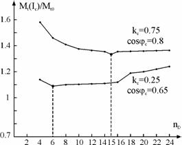 - la aceeasi Pn, odata cu cresterea (kc, cosjc), minimul momentului total al curentilor ceruti se deplaseaza spre un numar nD mai mare, deci spre un nr mai mic / TD.