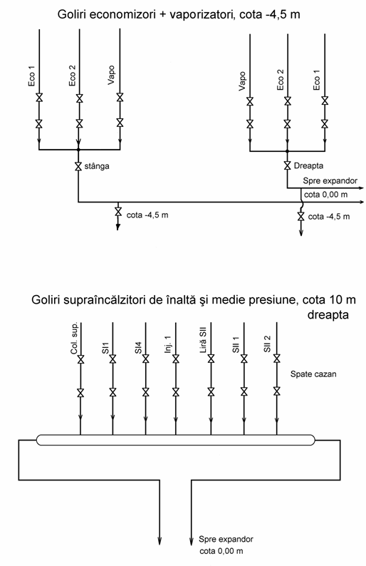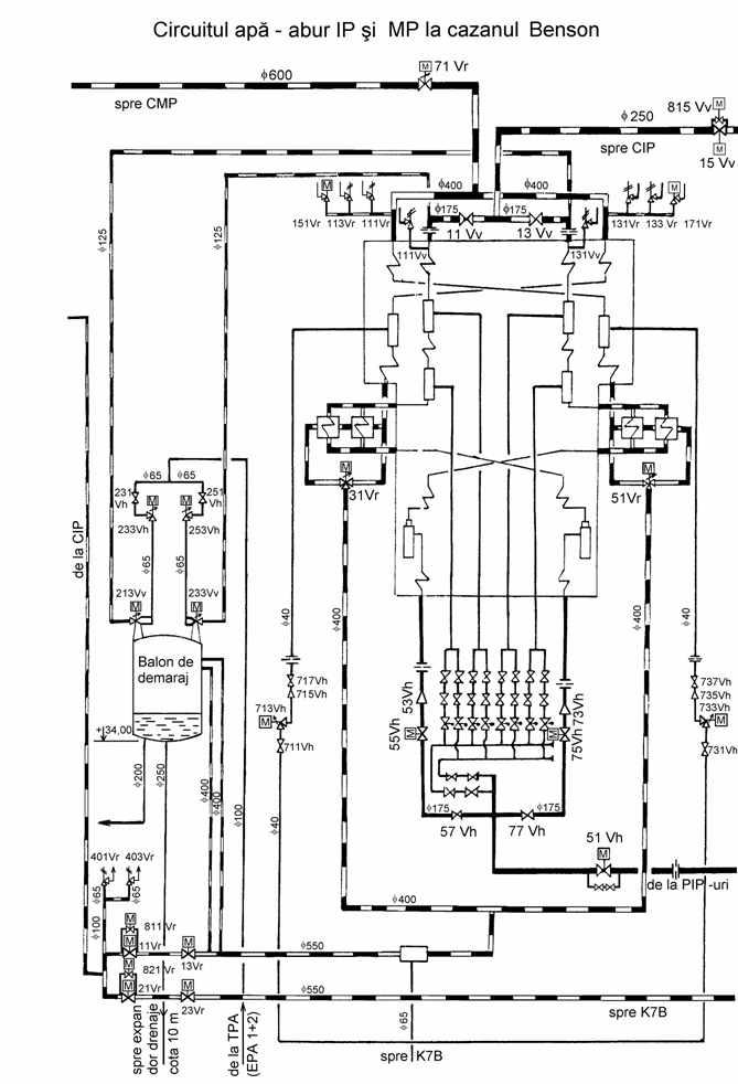 Dupa vana 51 Vh, conducta pentru alimentarea cazanului 7A se ramifica īn doua, cāte o conducta pentru fiecare parte a cazanului, avānd urmatoarele armaturi: