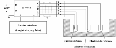 - circuitul de masurare, constituit din puntea P, care da la iesire tensiunea continua lent variabila U p, dependenta de valoarea R T a termorezistentei montate într-unul dintre bratele puntii si implicit de temperatura reglata;