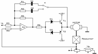 Amplificatorul în bucla deschisa (figura 2.6.) cuprinde amplificatorul operational (AO) si amplificatorul de iesire realizat în montaj Darlington cu tranzistoarele T 1, T 2.