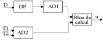 De regula, la echipamentele electronice din componenta sistemelor de reglare, semnalul de intrare este amplificat si adus într-o anumita gama si apoi supus prelucrarii conform functiei principale a aparatului. În figura 2.2. este prezentat un modul de intrare pentru doua semnale.