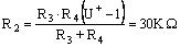 Pentru depolarizarea semnalului de intrare, respectiv la u i = 1 V sa avem u e = 0 V se aplica prin R 2 o tensiune pozitiva pe intrarea inversoare. Pentru valorile rezistentelor din figura 2.3., respectiv R 1 = 1.5 KW, R 3 = 15 KW, R 4 = 2.5 KW, se poate scrie: