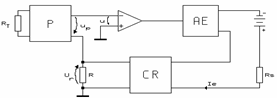 - circuitul de reactie negativa CR, de mare stabilitate, care include si circuite pentru liniarizarea caracteristicii curent de iesire (I e) - temperatura (q