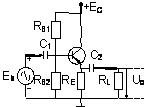 Pentru etajul emitor comun prezentat in figura 1, considerand RC<<RL, amplificarea in tensiune U0/Ein, in regim cvasistatic de semnal mic, este: |