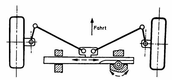 Montarea mecanismului pinion-cremaliera depinde de ampasarea grupului motor-transmisie, de constructia puntii din fata, de traseul posibil pentru arborele volanului. In plan vertical cremaliera poate fi montata sub axa rotilor, in planul axei rotilor, sau deasupra axei rotilor. In plan orizontal cremaliera poate fi montata in spatele axei rotilor si levierele fuzetelor dispuse spre fata, in fata axei rotilor si levierele fuzetelor dispuse spre spate, sau putin in fata axei rotilor si levierele fuzetelor dispuse spre fata, asa cum se vede in figura 1.12.