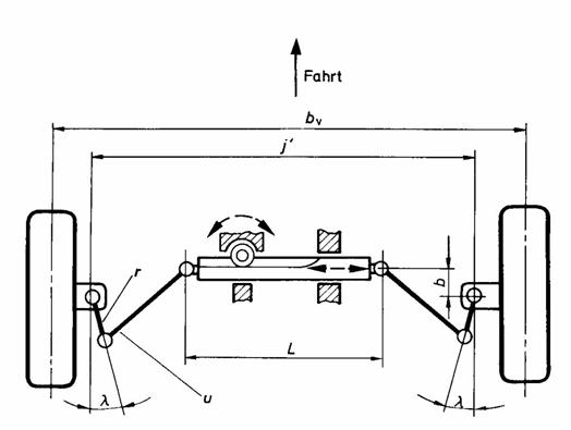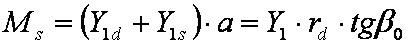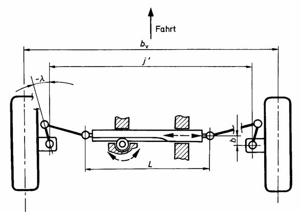 - consecinta dinamica: in cazul actiunii unor forte transversale (forta centrifuga in viraj, forta laterala a vantului, drum inclinat transversal), reactiunile transversale Y1d si Y1s la rotile puntii din fata dau nastere unui moment stabilizator Ms , dat de relatia: