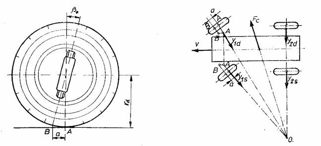 Unghiul de inclinare longitudinala al pivotului (unghiul de fuga) se noteaza cu β0 si reprezinta inclinarea fata de verticala a pivotului, masurata in plan longitudinal. Unghiul de inclinare longitudinala al pivotului si efectul sau stabilizator sunt prezentate in figura 1.36.