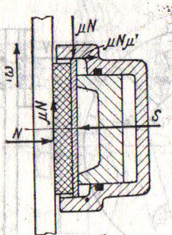 unde μ este coeficientul de frecare dintre disc si garnitura; μ' este coeficientul de frecare dintre partea metalica a placutei si elementele de ghidare ale placutei (μ' = 0,05..0,1).