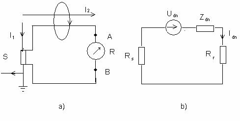 Prezenta unui conductor, parcurs de curentul i2, variabil în timp, produce prin inductie electromagnetica, o tensiune de interferenta ce determina un curent care intra printr-o borna (spre exemplu A) a receptorului si iese prin borna cealalta (spre exemplu B). O astfel de interferenta este de ,,mod diferential". Curentul I2 are continut propriu de armonice si ca urmare si curentul de interferenta, care circula în bucla de masurare, are acelasi continut de armonice. Una din aceste armonice de ordinul n este Idn. In fig. 1.1, b se prezinta schema electrica de principiu a circuitului de masurare referitoare la armonica n a curentului de interferenta, curent care are expresia: