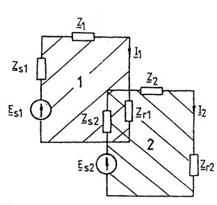 Daca doua sau mai multe circuite au o impedanta comuna, spre exemplu un conductor de masa, atunci trecerea curentului prin impedanta comuna este de natura sa distorsioneze curentii din toate circuitele cuplate galvanic. În fig.1.3. a, este data schema de principiu privind doua circuite, 1 si 2 cuplate galvanic prin intermediul impedantei comune Zx , cu notatiile: