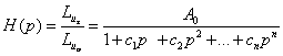 Cu n s-a notat numarul acumulatoarelor de energie în schema.Spre exemplu, daca filtrul consta în 2 condensatoare si o bobina, n=3. Cum p=σ+jω, de la functia de transfer se trece la caracteristica de frecventa pentru σ=0. Relatia devine: