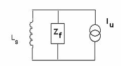 În aceste conditii, schema echivalenta de studiu a comportarii unui filtru industrial de armonici este cea din fig 1.19 care pune in evidenta faptul ca eficacitatea unui filtru de armonici este strâns legata de valoare inductivitatii care modeleaza reteaua de distributie.