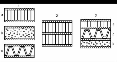 Fig.2. Compozite tip "sandwich" cu miez simplu (1), cu miez dublu (2), cu miez triplu hibrid (3)