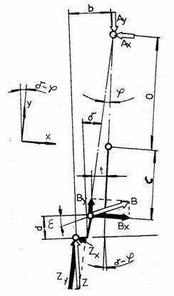 Studiul fortelor care apar in cuplele mecanismului se face considerand un sistem se referinta rotit cu unghiul δ - φ fata de sistemul de referinta al automobilului.