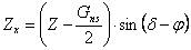 Se constata ca sistemul este rotit cu unghiul de inclinare transversala al pivotului fata de sistemul de referinta al automobilului. Pivotul inferior este articulatia sferica dintre corpul fuzetei si amortizor, considerat ca facand parte din corpul amortizorului.