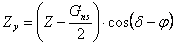 Forta longitudinala X se reduce in axul rotii la X', iar la nivelul axei amortizorului la X'' si se pozitioneaza la distanta "a" fata de centrul rotii. Forta laterala Y se reduce la nivelul axei amortizorului la Y' si se pozitioneaza la distanta "ns" fata de cale.