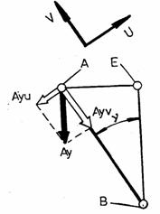 Fig.6.16.Descompunerea componentei Ay dupa directia amortizorului "v" si dupa directia perpendiculara pe axa amortizorului "u"