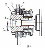 In cazul dispozitivului din figura 2.12.a se foloseste boltul 1 fixat pe talerul franei si montat cu jocul δ' in interiorul bucsei 2. Aceasta impreuna cu celelalte componente ale dispozitivului este montata pe inima 4 a sabotului intr-o gaura eliptica cu dimensiuni mai mari decat diametrul exterior al bucsei. Jocul de montaj reprezinta tocmai jocul normal dintre tambur si sabot. Inima sabotului este stransa intre saibele de frictiune 3 cu piulita 5 si arcul elicoidal 6. Forta de frecare care ia nastere intre inima sabotului si saibele de frictiune este mai mare decat forta arcului de readucere a sabotului. In cazul in care jocul dintre tambur si sabot va depasi marimea jocului la franare, dupa ce bucsa sa va rezema de bolt, sabotul se va deplasa in continuare sub actiunea fortei de actionare care invinge fortele de frecare. Dupa franare, arcul de readucere departeaza sabotul de tambur numai cu jocul deoarece nu poate invinge forta de frecare interna a dispozitivului.