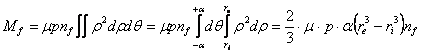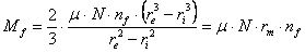Forta normala pe elementul de arie dA=ρ·dρ·dθ este dN=p·dA, forta de frecare este dFf =μ·dN, momentul de frecare elementar in raport cu centrul O va fi dMf=ρ·dFf , iar momentul total de frecare pentru nf perechi de suprafete de frecare si distributie uniforma a presiunii va fi: